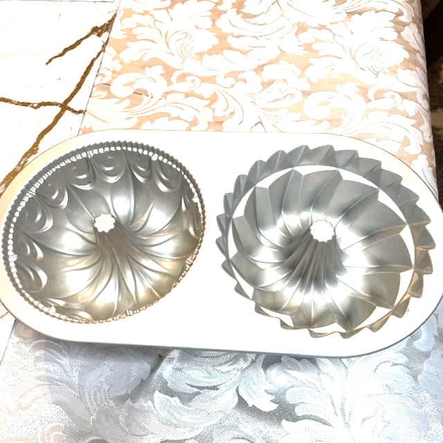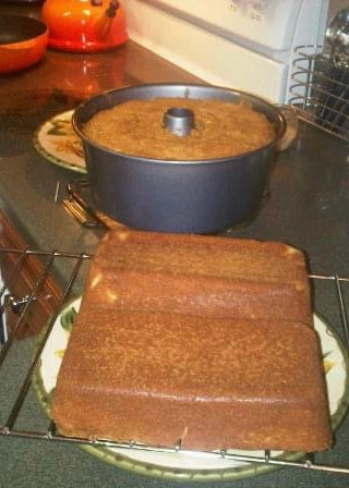 Grandma's cake is on the left. Mine is on the right. Look closely and you can see the beginning of a split halfway through my first cake.